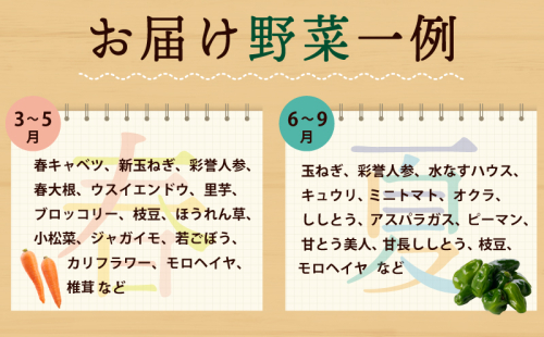 新鮮な泉州野菜のおまかせ詰め合わせを毎月1回お送りします。