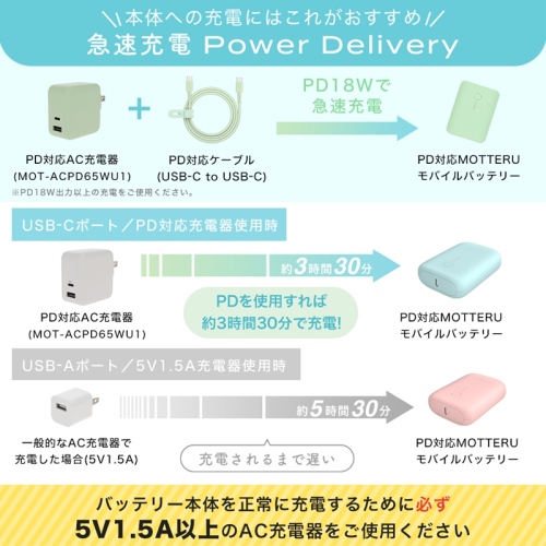 ※USB Power Deliveryに対応したAC充電器と充電ケーブルをご使用ください。