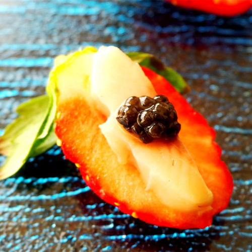 低温殺菌を行わず減塩処理のキャビアは、粒感よりもとろける口触りを特徴しており、臭みがなく熟成されたクリーミーな味わいをお楽しみいただけます。
