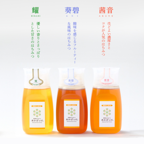 4月から10月にミツバチが集めた天然のはちみつアソート3本をお届けします。