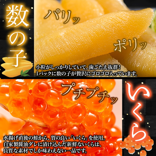 高級海鮮の「数の子」と、鮮度抜群の「いくら」を