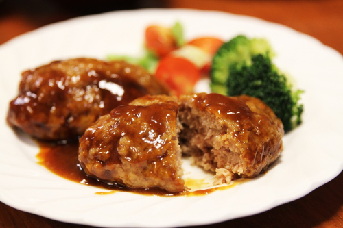 養豚場直送の新鮮な豚肉を使い、肉屋としても創業60余年、昔ながらの手ごねハンバーグの味をお届けいたします。