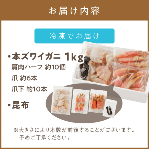 - 本ズワイガニ1kg、昆布