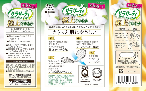 天然コットン100%で敏感なお肌をいたわるかぶれにくいおりものシートです。