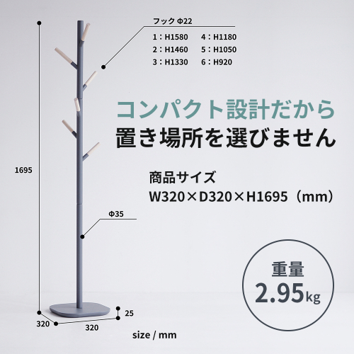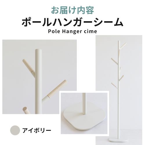 佇まいが美しく、何を掛けても様になるオブジェのようなポールハンガー。定番のアイボリーを採用。単純な白ではない、あたたかみのあるカラーがお部屋をオシャレに演出してくれます。