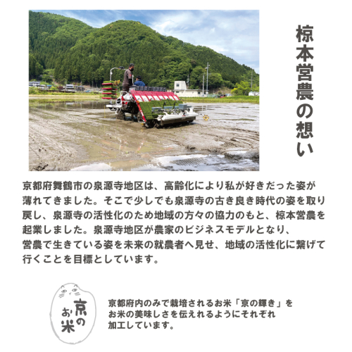 原材料:お米(舞鶴産「京の輝き」)、でんぷん(北海道産/じゃがいも由来)