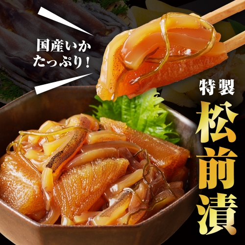 いか(国産)、数の子(ロシア産)、真昆布(北海道産)、醤油、水飴、がごめ昆布(北海道産)、米発酵調味料、砂糖、かつおエキス、蛋白加水分解物/ソルビット、調味料(アミノ酸等)、(一部に小麦・大豆・いかを含む)