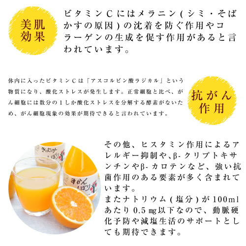 無添加で砂糖を使用しない、お子様からお年寄りの方まで安心して飲んでいただける100%ストレートみかんジュースです。