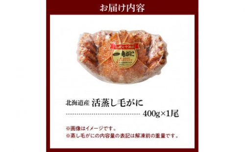 北海道産活蒸し毛蟹約400g×1尾【er001-066-b】