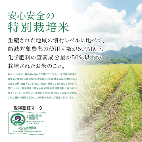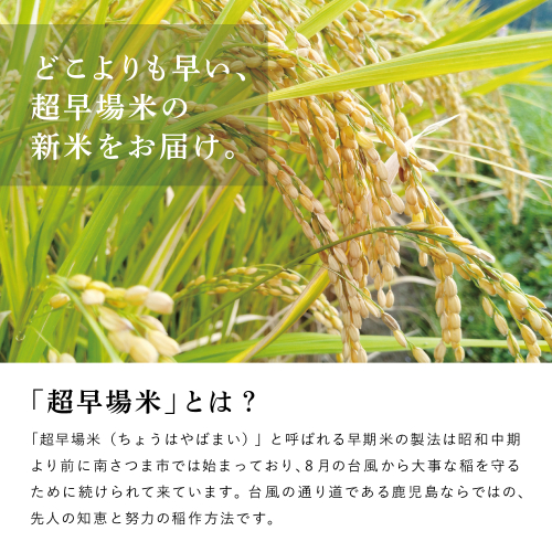 鹿児島県薩摩半島のほぼ中央部にある南さつま市金峰町で栽培され、南国の恵みにより、本土で一番早い新米と言われてます。