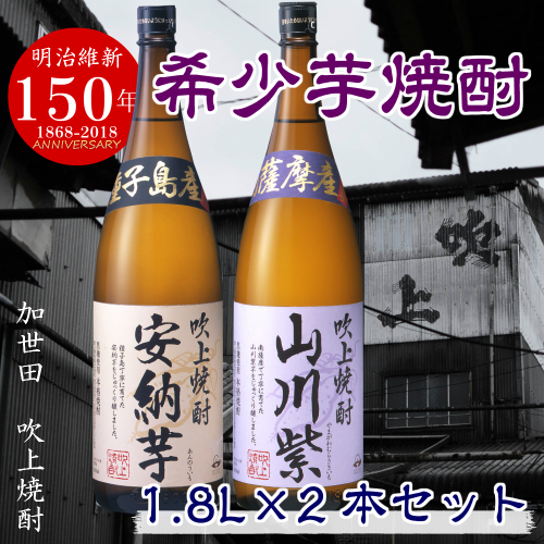 - 【数量限定】吹上焼酎 希少芋 1.8L×2本セット 1800ml 安納芋 山川紫 25度 国産米 お湯割り 水割り ロック プレミア 限定 飲み比べ 焼酎 ギフト 南さつま市