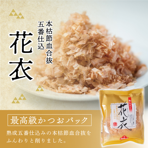 「いつでも美味しい鰹節を…」との思いから使い切り1.5gが「花衣」のカタチです。