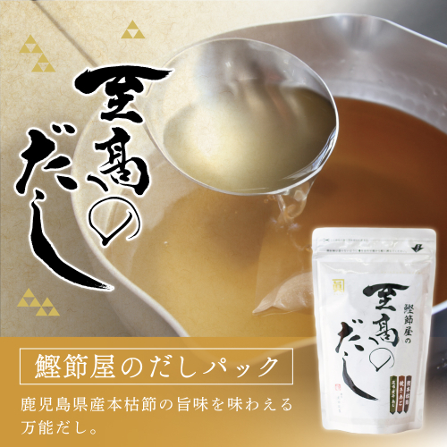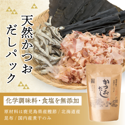 本場鹿児島の鰹節を使用したお出汁とかつおパックで、いつものお料理を美味しく豊かに。贈答用としても。