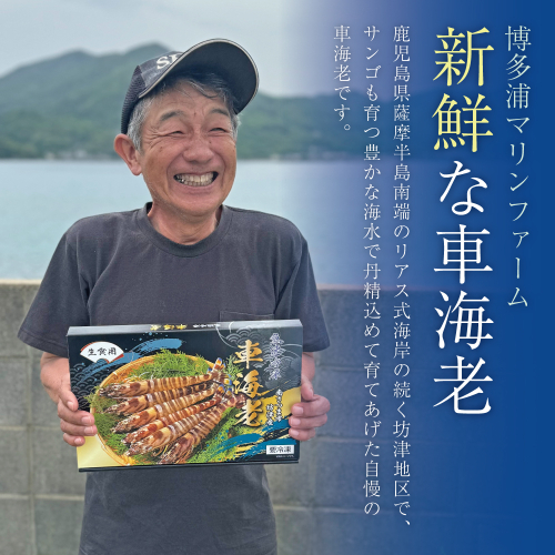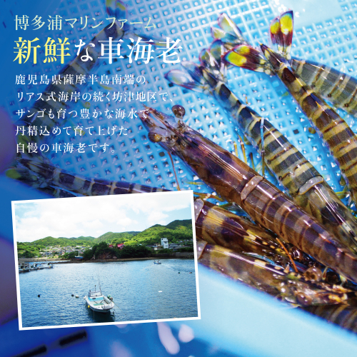 坊津の豊かな自然環境の下で、愛情を持って育てられた車海老です。 水揚げ後、すぐに氷で締めて真空しておりますので鮮度抜群! 車えび本来の旨味と、キュッと引き締まった身のプリプリ食感が自慢です。 ◆解凍方法:お召し上がり前に流水で解凍して下さい。 ※生食不可、必ず加熱調理して下さい。