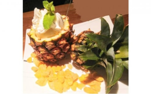 青い空!青い海!大自然の西表島で『一口食べると笑顔になる!』をモットーに育てた愛情たっぷりのピーチパインです。正式名をソフトタッチと言い、小ぶりで芯まで柔らかく、果肉の色は白で桃のような香りがします。南国フルーツの代表であるパイナップルの中でも不動の人気を誇ります。とても甘みが強いので『パイナップルは酸っぱくて苦手』という方も是非試してみてください。
