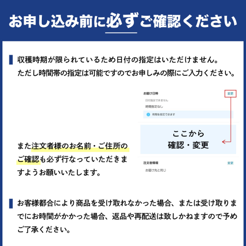 ※収穫時期が限られてる為、日時指定は致しかねますので予めご了承ください。