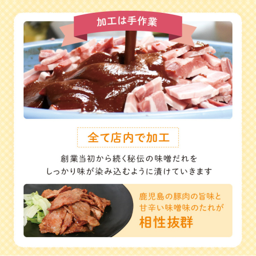 <定期便・全3回>焼肉用豚肩ロース薄切り自家製味噌ダレ味付き(計1.5kg・250g×2×3回) 1243802 - 鹿児島県肝付町