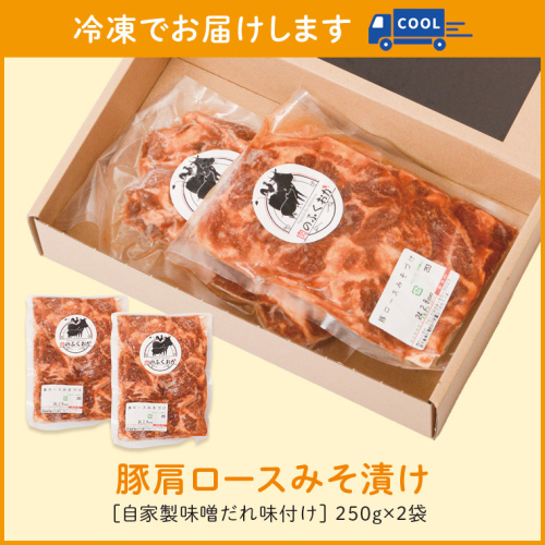 <定期便・全3回>焼肉用豚肩ロース薄切り自家製味噌ダレ味付き(計1.5kg・250g×2×3回)