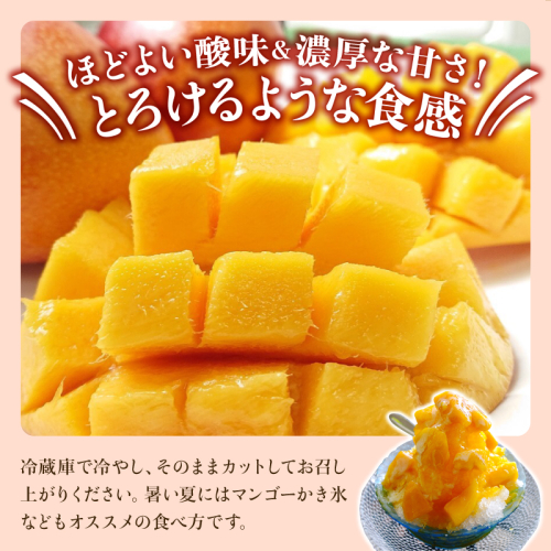 より濃厚な甘さに程良い酸味、ジューシーでとろけるような食感のこのマンゴー、1度食べたらやみつきになること間違いなし。