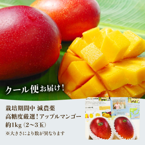 - 西表島産 栽培期間中減農薬栽培の高糖度アップルマンゴー約1kg(2〜3玉)