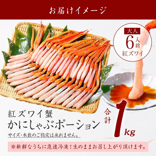【年末配送可能 受付9月まで】3301. 紅ズワイ蟹ポーション 1kg前後 生食可 約6人前 カニ かに 蟹 海鮮 ずわいがに ズワイガニ 送料無料 北海道 弟子屈町