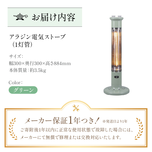 - アラジン 遠赤 グラファイトヒーター 1灯 グリーン 緑 CAH-1G9E Aladdin 電気ストーブ 遠赤グラファイト ストーブ ヒーター 電化製品 家電 暖房器具 暖房 冬物家電 リビング 寝室