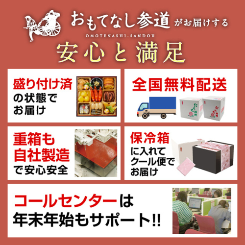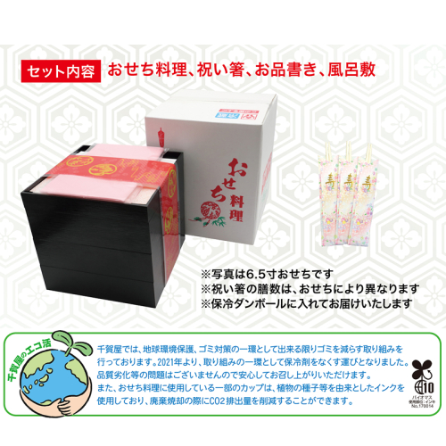 6.5寸の特別な重箱に盛り付けたおせちは、ご贈答にもおすすめです!