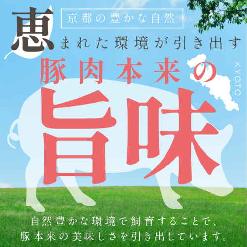 弊社は良質な京都産豚肉の提供にこだわっています。厳選された血統を掛け合わすことで生まれる豚のみを取り扱っており、自然豊かな環境で飼育することで豚本来の美味しさを引き出しています。餌にはパンや米などをブレンドすることによって、脂身に甘みをもち口溶けの良い柔らかな肉質のお肉となっています。精肉のプロが、一頭買いをし余すことなく、豚肉本来の旨味たっぷりの味わいをお届けします。