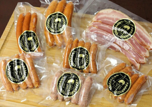 富士山麓でのびのび育てられたルイビ豚。一流シェフが絶賛する高級銘柄豚のソーセージ・ベーコンのセットです。