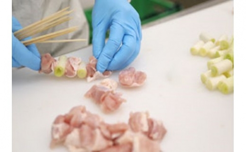毎日、自分たちで愛情込めて育てた富士の鶏を、手作業で1本ずつ丁寧に刺しております。