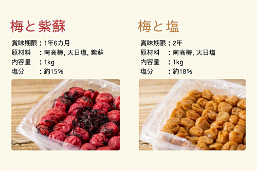 - ・梅と塩 1kg:製造日から2年