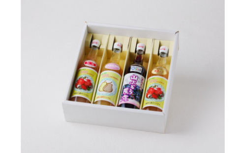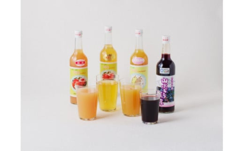 - 山ぶどう原液500ml×1本、ラ・フランスジュース500ml×1本、紅玉ジュース500ml×1本、ふじりんごジュース500ml×1本×1
