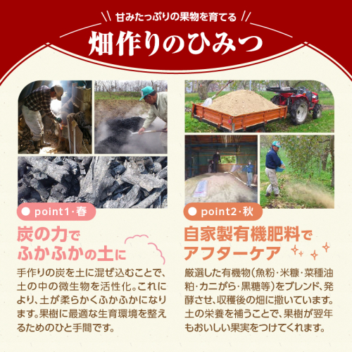 農薬を減らし、40年以上化学肥料は使用せず、手作りの有機ぼかし肥料で栽培しました。自家製の木炭を畑にまくなど土づくりにもこだわって丹精込めて育てたお品です。