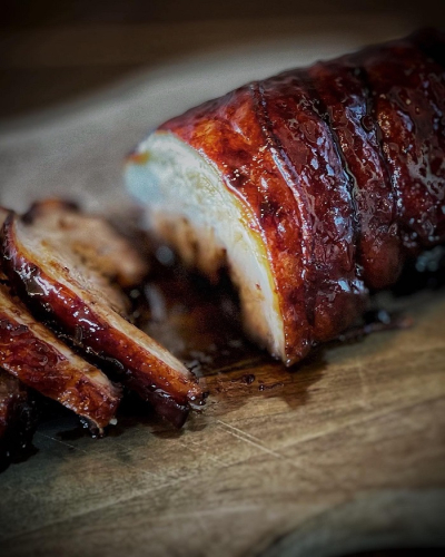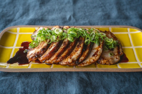 フライパンに油を引き、弱火で両面をじっくりとチャーシューの脂分が溢れ出すイメージで温め、 タレを入れて絡ませ盛り付けしてお召し上がりください。