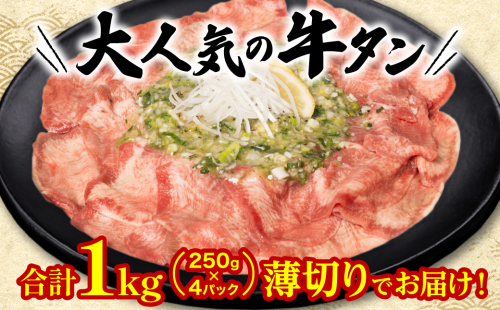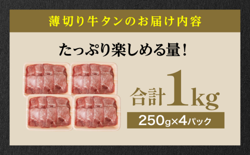 - 薄切り牛タン 250g ×4パック 合計 1kg