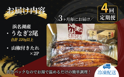 • うなぎ 定期便 3ヶ月毎 浜名湖 国産 鰻蒲焼 約110g× 2尾 小分け うなぎ蒲焼 浜名湖うなぎ 浜名湖産 国産うなぎ 惣菜 おかず ギフト 贈答 土用の丑の日 丑の日 蒲焼き うな丼 うな重 鰻 魚 魚介 魚介類 冷凍 冷凍配送 静岡 静岡県 浜松市 定期 4回