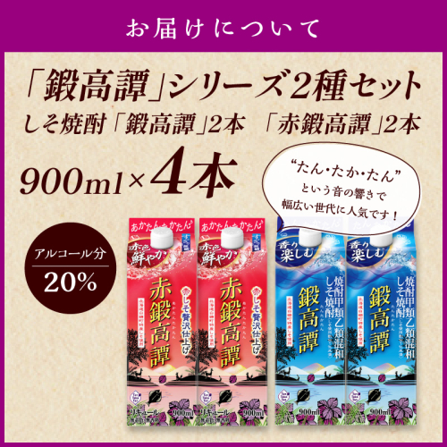 しそ焼酎 鍛高譚2種 飲み比べセット【900ml×2本×2種】