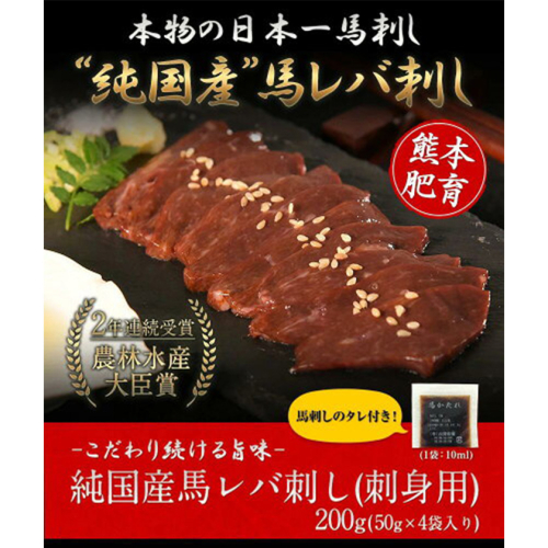 馬レバ刺し ブロック レバー 国産 熊本肥育 冷凍 生食用 たれ付き(10ml×2袋) 50g×4パック 肉 馬刺し 馬肉 絶品 牛肉よりヘルシー 馬肉 小分け 平成27年28年 農林水産大臣賞受賞 熊本県長洲町《2026年3月中旬-6月中旬頃出荷》