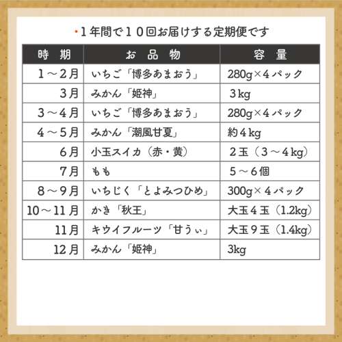 ![福岡県旬のフルーツ定期便【年10回コース】【1~2月開始】[G5261] 1338075 - 福岡県福津市](/upload/save_image/1338075_image_1_l.jpg)