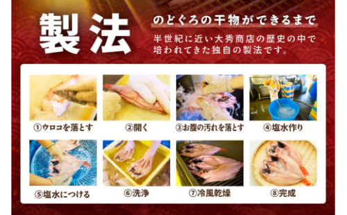 程よい大きさののどぐろを大秀商店独自の製法で1まいづつ丁寧に干しました。