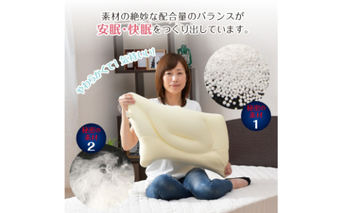(2)中材にはマイクロビーズとマイクロファイバー綿を使用し、枕が上下左右に自在に動きます。