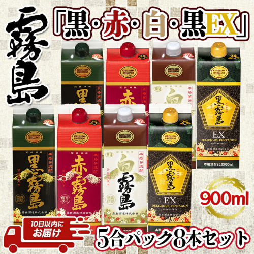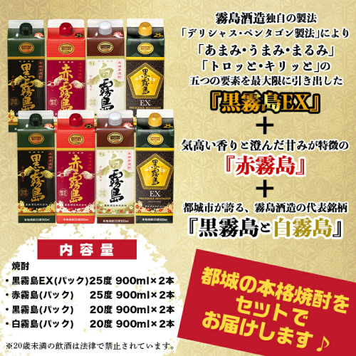 霧島「黒・赤・白・黒EX」パック900ml×8本セット ≪みやこんじょ特急便≫_22-2202 135685 - 宮崎県都城市