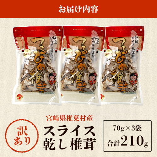 【訳あり】 国産 原木椎茸の乾し椎茸スライス【210g】[宮崎県産 国産 原木椎茸 乾し椎茸 椎茸 しいたけ シイタケ 干し椎茸 原木栽培 産地直送 スライス グアニル酸 ビタミンD おすすめ 乾物 きのこ 栄養 美容 食物繊維 煮物 みそ汁 汁もの ダシ お鍋 鍋 特産 特産品 ご当地 お取り寄せ 保存食 備蓄 多用途 便利 ギフト 贈物 贈答品 プレゼント お中元 お歳暮]【JA-27】