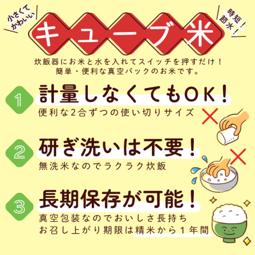 もっちりとした食感に、その名の通りのツヤを備えた極上米です。ご飯そのものがご馳走と呼べるお米です。 【キューブ米】 山形産つや姫を無洗米加工し、2合(300g)の使い切りサイズで真空包装した商品です。精米日から1年間美味しくご賞味いただけます。 事業者:山形県食糧株式会社 ◆必ずお読みください◆ ◎お受取り後は必ずすぐに開封し、中身のご確認をお願い致します。 ◎「お申し込みの不備」「事前連絡をいただいていない長期不在や転居」「住所不明」「日数が経ってからのお受取り」に対する再出荷は致しかねますのでご了承ください。 ※お礼の品の配送日の指定は承っておりません。 ※天候や収穫状況により、お届けや規格が変更になる場合がございます。 ※画像はイメージです。画像のものと多少異なる場合があります。 ※商品お受取り後、すぐに商品の状態をご確認ください。お礼の品の発送には万全を期しておりますが、万が一外装破損、異物、汚れ等があった場合は、写真・画像を添付の上お早めに「山形市ふるさと納税お礼の品事務局」までご連絡ください。尚、お時間が過ぎてからの対応は致しかねます。