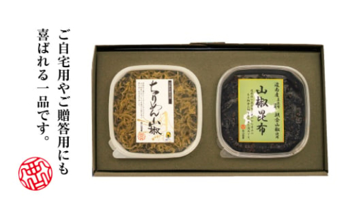 淡路島の佃煮職人が贈る、風味豊かな"山椒昆布"と"ちりめん山椒"のセットです。