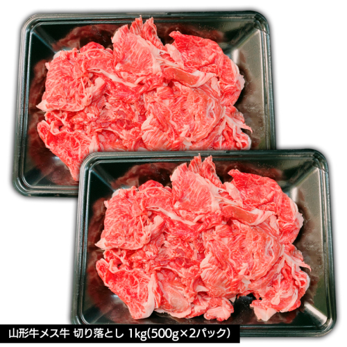 山形牛メス牛の切り落とし1kg(500g2×パック)お送りいたします。
