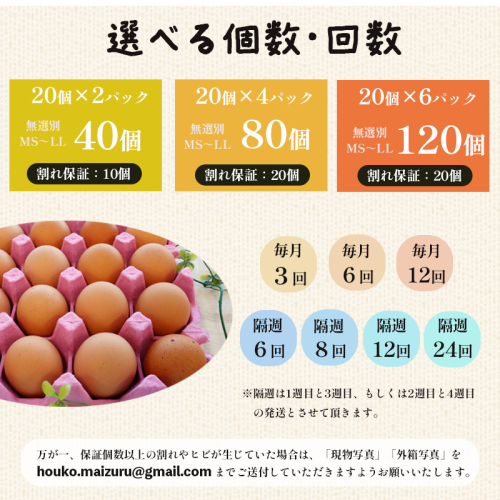 - 【定期便】 卵 120~2880個 無選別 MS~LL 京の贈り物 20個×2パック 20個×4パック 20個×6パック 毎月3回/6回/12回 隔週6回/8回/12回/24回 割れ保証含む 18,000~312,000円 選べる 容量 たまご 赤卵 新鮮 直送 たくさん 卵の定期便