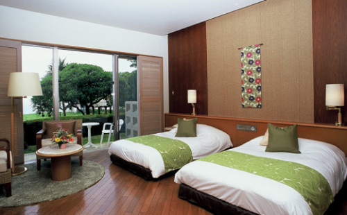 絶景リゾートホテル、ザ・サザンリンクスリゾートホテル 。全てのお部屋からは、緑のゴルフコースと沖縄の青い海を一望することができます。太平洋を望む大パノラマをバックに、落ち着いた雰囲気の中で地元ならではの食材を使ったお食事をお楽しみいただけます。