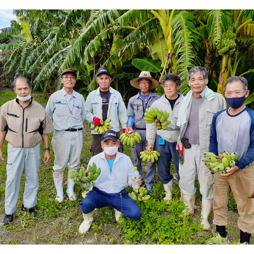 南風原町農友会が育てるアップルバナナは、甘くもっちりとした食感と爽やかな後味が特徴。有機肥料で土壌を強くし、実がついた後は専用の肥料を適宜追肥するので、非常に栄養価の高いバナナとなっています。また農薬は一切使用せず栽培していますので、安心してお召し上がりいただけます。