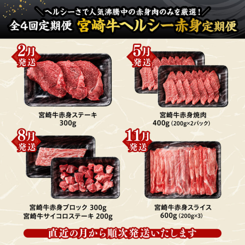 - 【全4回】宮崎牛 ヘルシー赤身定期便 【 肉 牛肉 国産 黒毛和牛 宮崎牛 全4回 焼肉 しゃぶしゃぶ 焼きしゃぶ BBQ 宮崎県 川南町 】